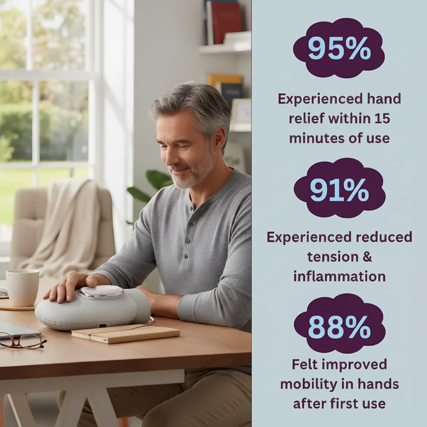 Poskytuje účinnú úľavu od každodenných problémov, ako je ranná stuhnutosť, necitlivosť a brnenie a celková únava rúk.