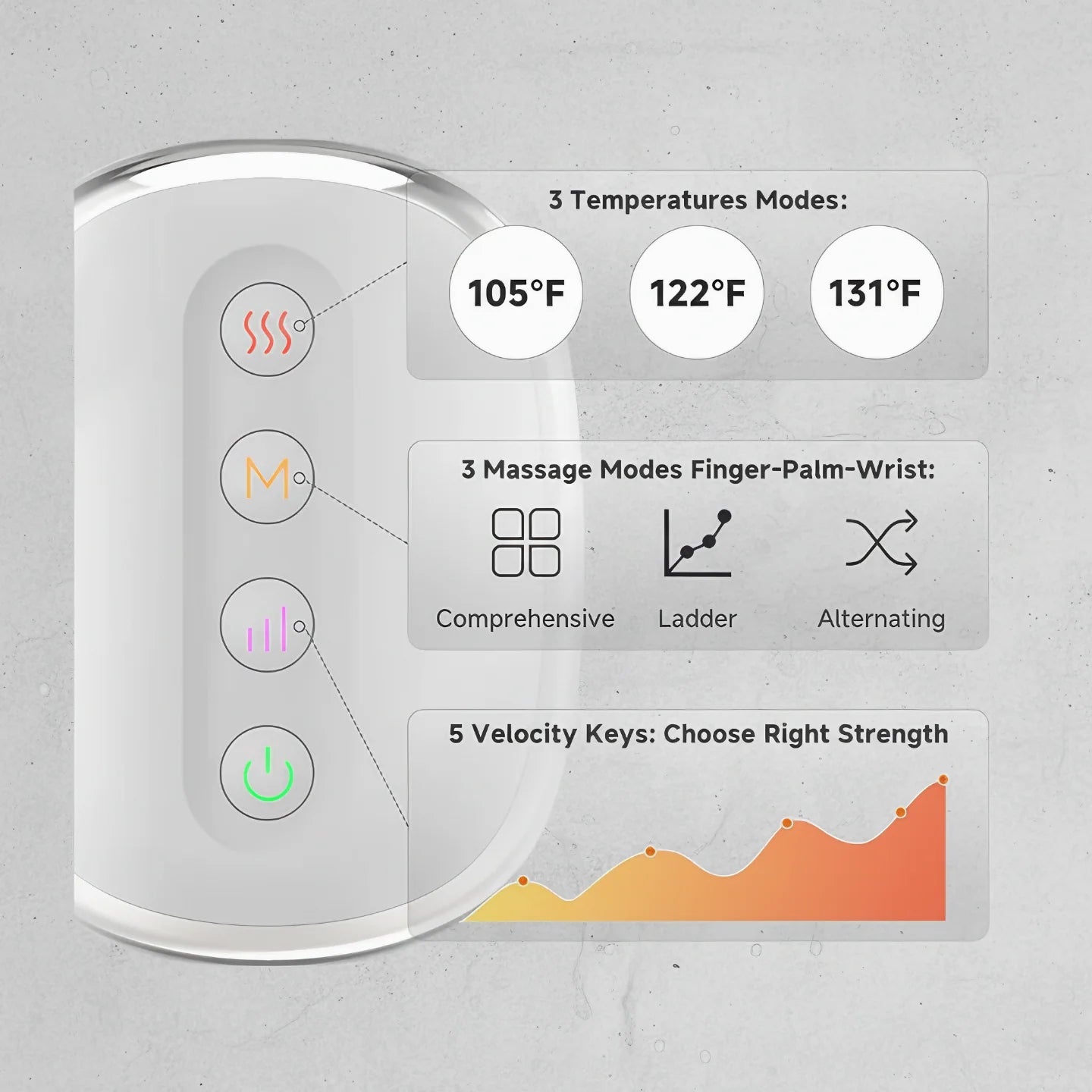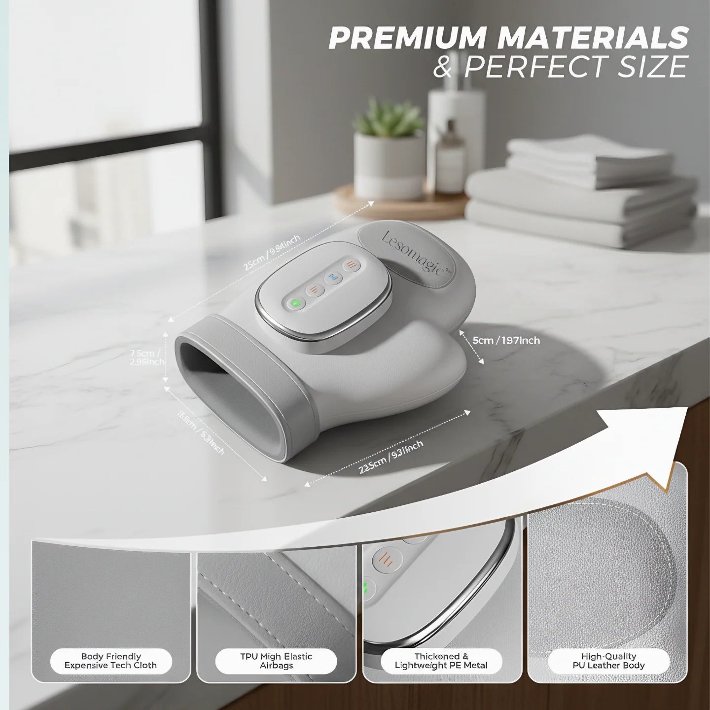 Používanie ručného masážneho prístroja Lesomagic™ po dobu 15 minút denne jemne uvoľní napäté nervy, zvýši krvný obeh, uľaví od stuhnutosti a obnoví prirodzenú flexibilitu spôsobenú únavou rukou alebo natiahnutím prstov. Prístroj funguje kombináciou výhod upokojujúceho tepla, inteligentnej kompresie a presnej shiatsu masáže.